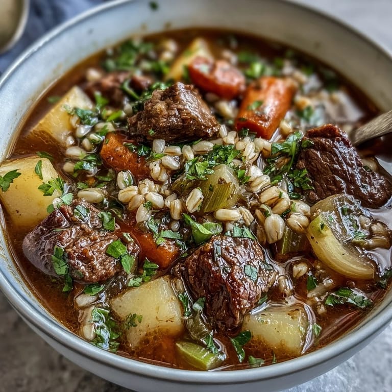 Save to Pinterest There's something about opening your refrigerator on a cold afternoon and deciding the day calls for beef and barley soup. I didn't grow up with this particular recipe, but I stumbled into it one November when my neighbor mentioned hers could simmer while she worked, filling her whole house with this impossible, warm aroma. She was right, and now whenever the weather shifts toward gray skies, I find myself reaching for beef and barley without much thinking.