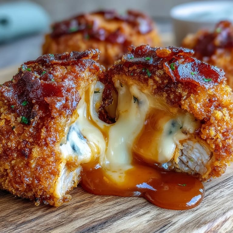 Save to Pinterest My kitchen counter was a mess of flour dust and breadcrumbs the night I decided to turn leftover buffalo wings into something portable. I had mozzarella that needed using, bacon from breakfast, and ground chicken I'd grabbed on impulse. What started as a way to clean out the fridge turned into the kind of snack that makes everyone stop mid-conversation and ask what's in the oven. The smell alone—sharp buffalo heat mingling with melting cheese and crisping bacon—had my neighbor knocking within minutes.