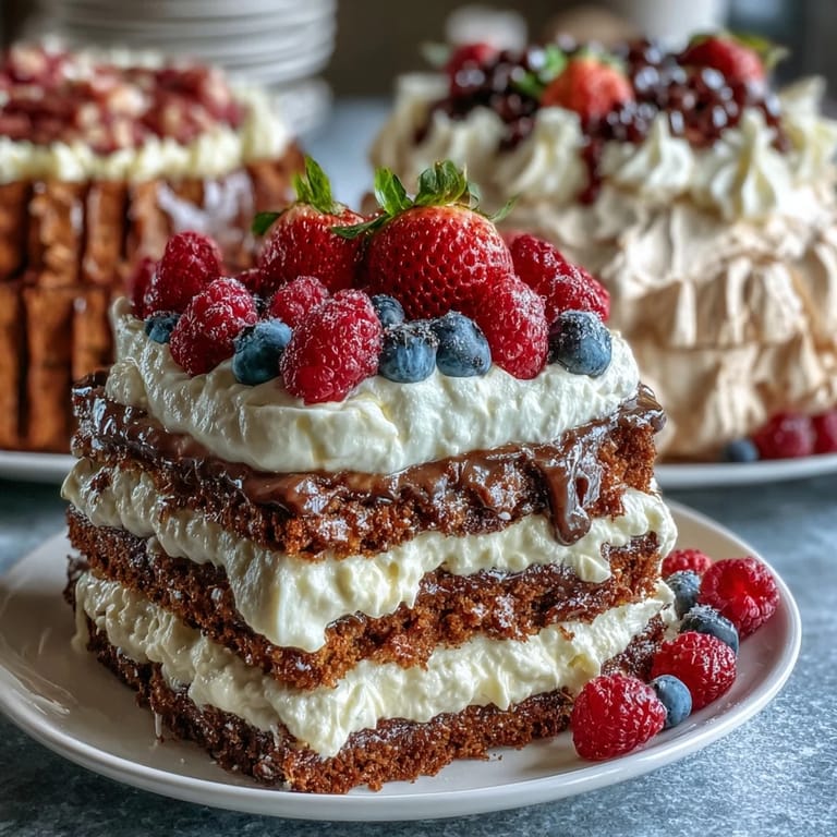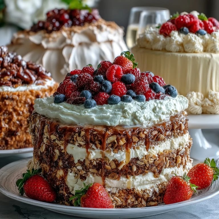 Save to Pinterest The scent of freshly grated carrots filling the kitchen and the crisp meringue of a pavlova cooling on the counter always signal that spring is here. I recall standing in front of my oven, watching the lemon tart crust slowly turn golden while chatty family members drifted in and out, drawn by the promise of sweets. Making these three desserts together feels less like a task and more like setting up a celebration, each one capturing a little piece of the season. Sounds of laughter or playful debates over 'which is best' echo as I whip cream or zest lemons. There&aposs something almost theatrical about arranging them on the Easter table, each with its own flourish.