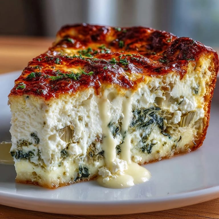 Save to Pinterest My neighbor handed me a Tupperware full of this bake one Wednesday evening when I was knee-deep in work deadlines and living off cereal. She said it reheated beautifully and kept her full for hours. I microwaved a square that night and it tasted like someone actually cared, warm and creamy with pockets of tangy feta and tender spinach. That week I asked for the recipe, and now I make it every Sunday to get through the chaos.