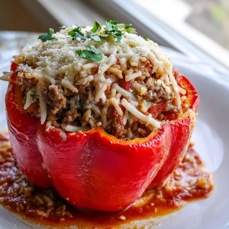 Save to Pinterest I stood in my grandmother's kitchen watching her hollow out bright red peppers with such care, treating each one like a little vessel waiting to be filled. She told me the secret was never rushing the filling process, letting the rice and meat mixture cool just enough so it settled into the pepper cups without leaving air pockets. The way the kitchen smelled when those peppers came out of the oven, bubbling with tomato sauce and melted cheese, became one of those sense memories that sticks with you forever.